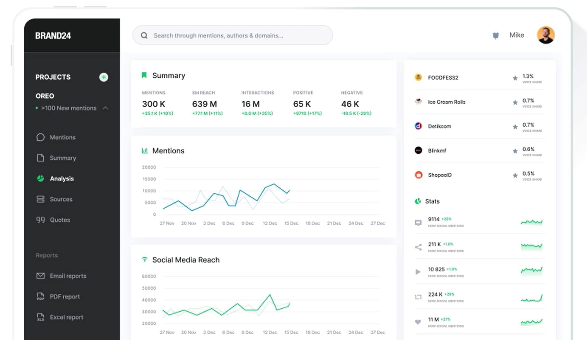 Brand24 turns the internet into real-time customer intelligence. AI tracks mentions across social, news, blogs, forums, videos, podcasts, and reviewsโrevealing how people truly talk about your brand, competitors, and market, the moment it happens.