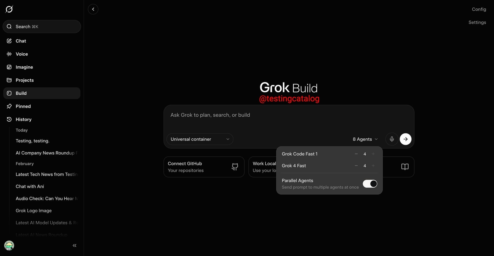 ๐ Whatโs happening: xAI is testing Parallel Agents and a hidden Arena Mode inside Grok Build. Grok Build is xAIโs coding environment that turns prompts into working code. Now one prompt can now trigger up to eight agents across Grok Code 1 Fast and Grok 4 Fast, with outputs displayed side by side. Arena Mode appears designed to auto rank or score results. The interface is shifting toward a browser style IDE with tabs, live previews, dictation, and GitHub integration. This is clearly built for volume.