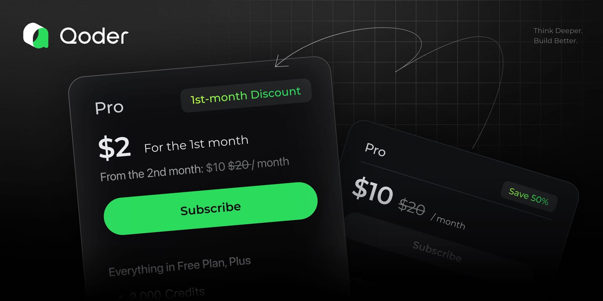 💥 Price Crash: Qoder Pro Just $2 (First Month)